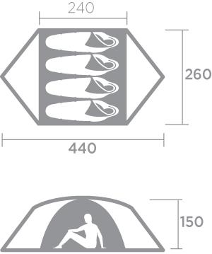 - Inner: 270 x 240 x 160cm / 4P / 10.2kg