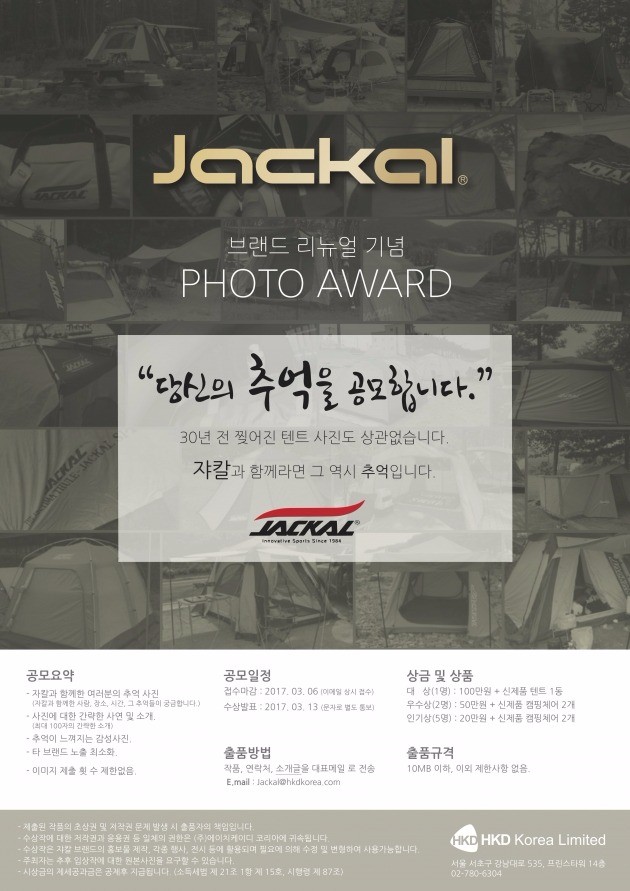 쟈칼과 함께한 추억이 느껴지는 감성사진 및 간략한 사연을 보내주면 된다. 수상작은 300만 원 이상의 상금 및 상품이 제공된다.